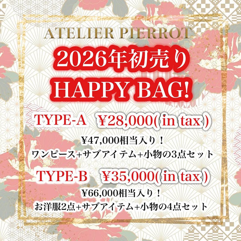 HAPPY BAG ¥16,500(税込) 対象ニットとアウターからお好きなものを、限定バッグに入れてお渡しいたします。 |