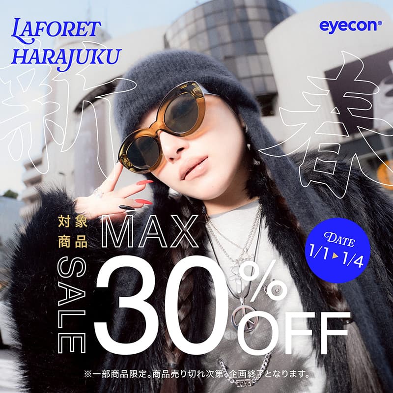 1/1~1/4の期間中、特別価格での販売(サングラス、伊達メガネの割引販売)、最大割引率30% |