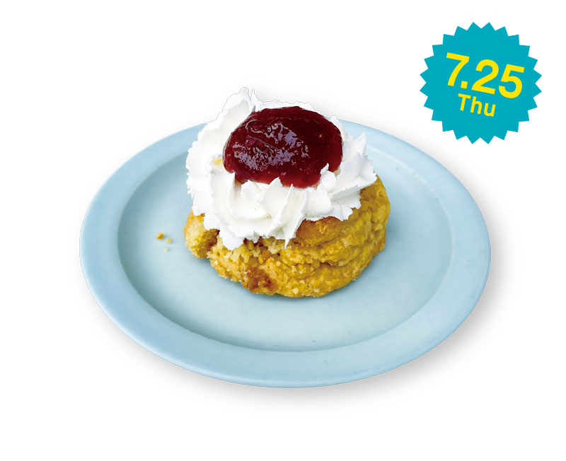 クッキーとスコーンを合わせた、外はサクサク、中はほろほろ食感の“スコッキー”に、ホイップクリームと苺ジャムをトッピング。