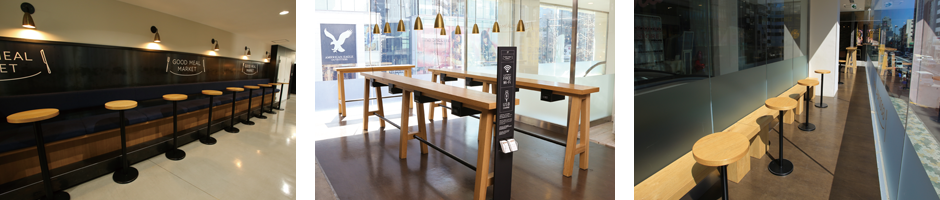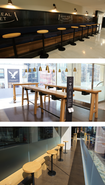 2F GOOD MEAL MARKETには、2F飲食店をご利用される方がどなたでもお使いいただける共用席スペースがございます。是非、ご利用ください。