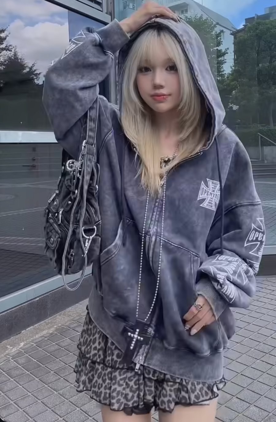グレーは落ち着いたニュアンスでクールに、ネイビーは深みのある色合いでよりストリート感を強調しています。