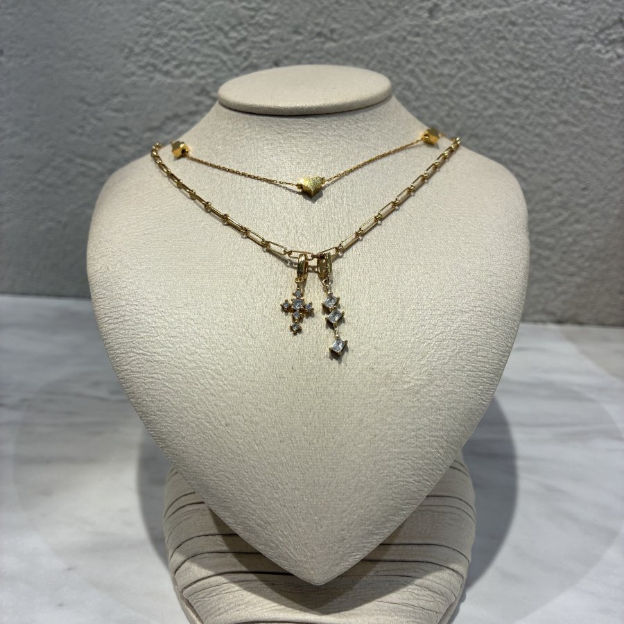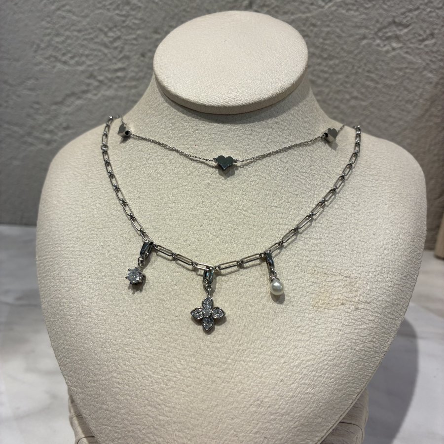華奢なチェーンに小さなハートを並べたステーションネックレス。