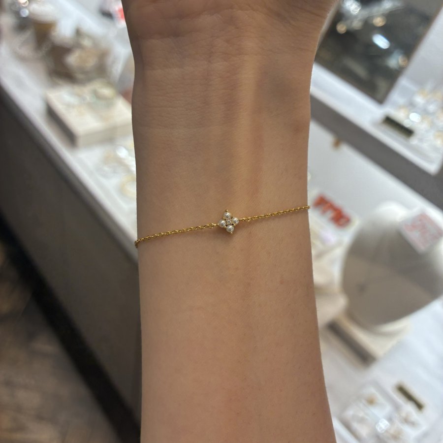 小花のように並んだパールが可憐にきらめくブレスレット。