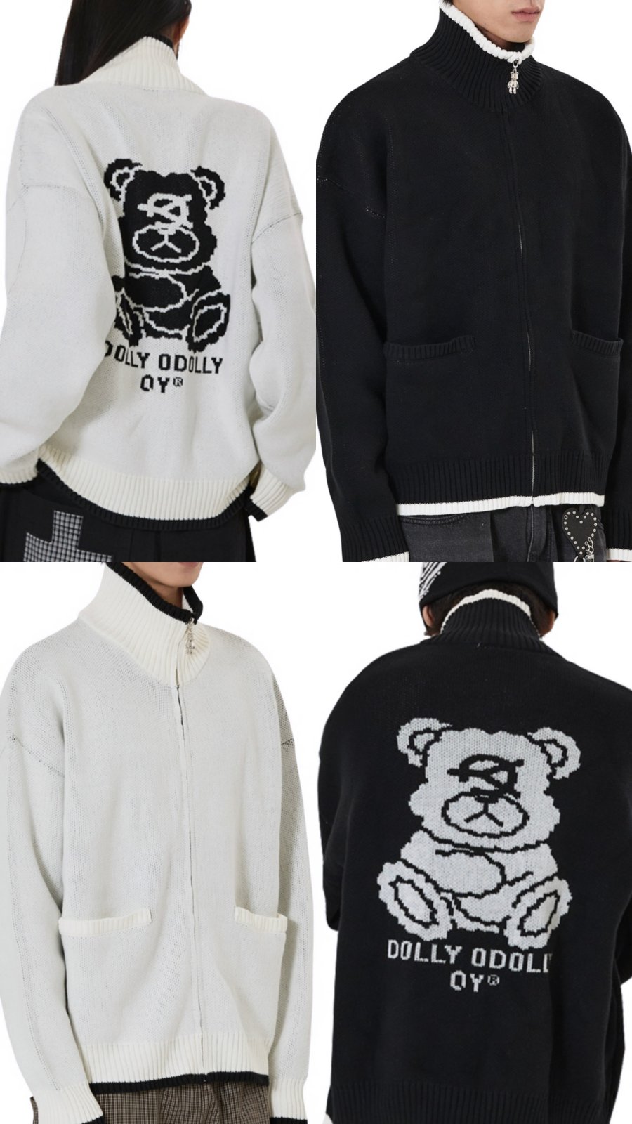 フロントはシンプルで、バックには大きなドーリーベアがデザインされたニットジップアップです。