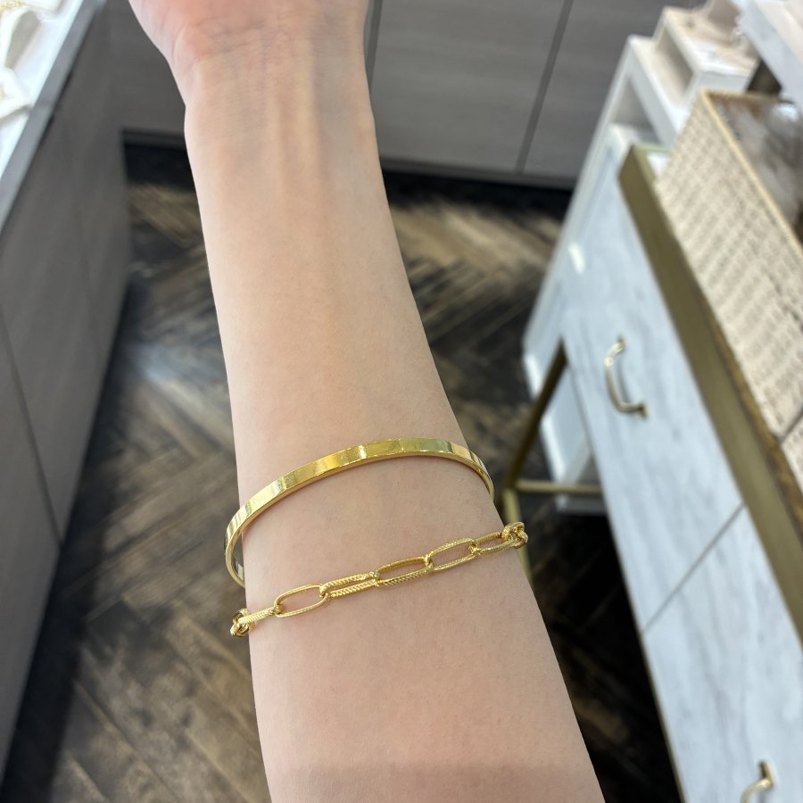 チェーンとメタルバングルを重ね付けしたような2連デザイン