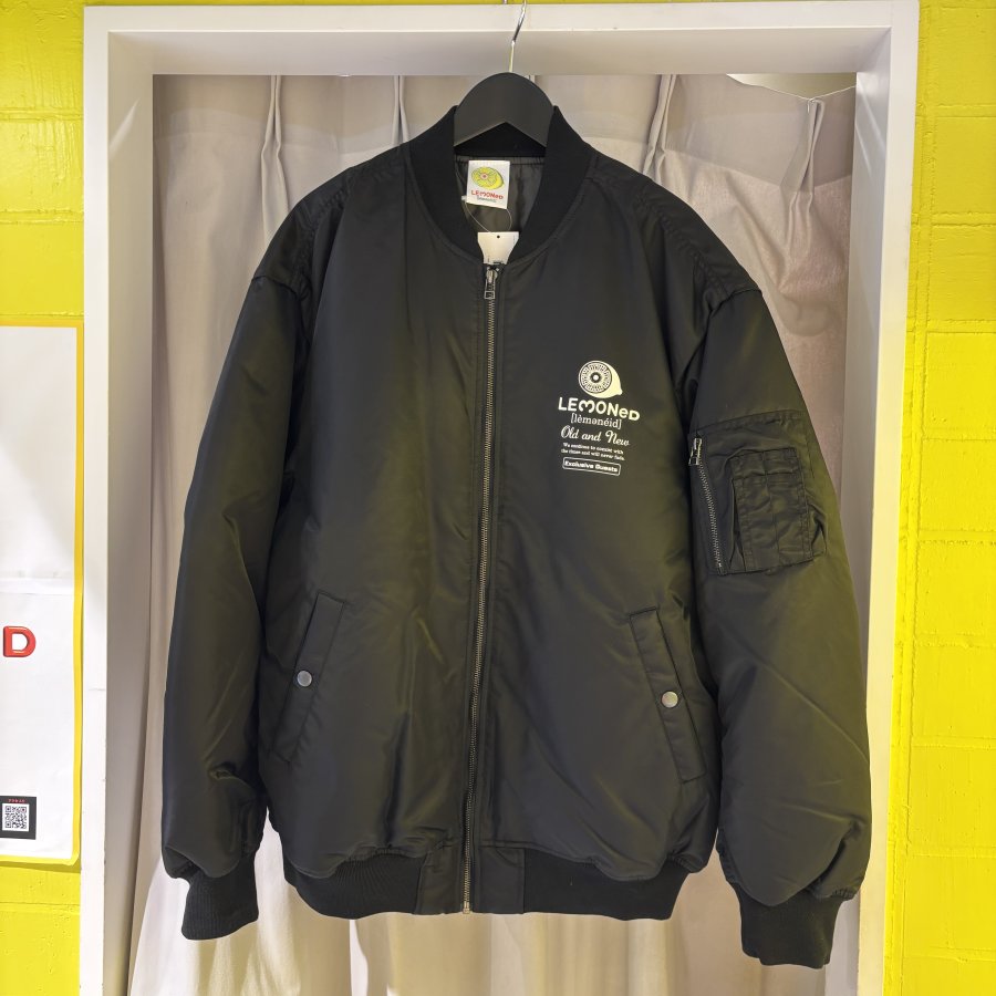 レモショのMA-1/Old&Newは黒地に白のデザインで何にでも合わせやすく、暖かいものになっています!
