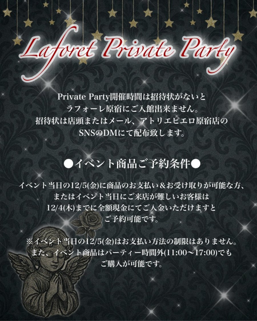 ラフォーレプライベートパーティーにて先行販売いたします。