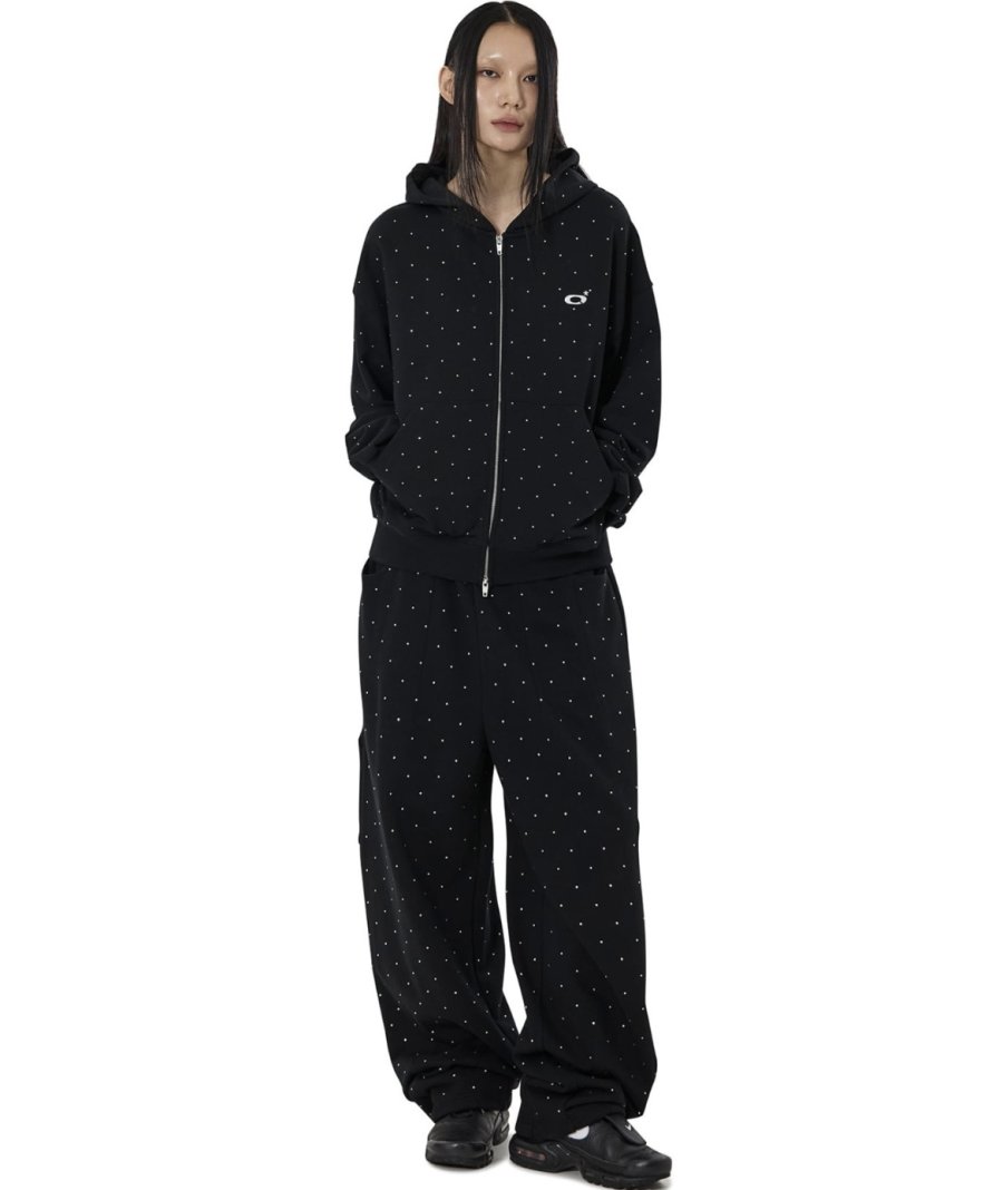 ドット状のラインストーンがポイントのフーディジップアップ。