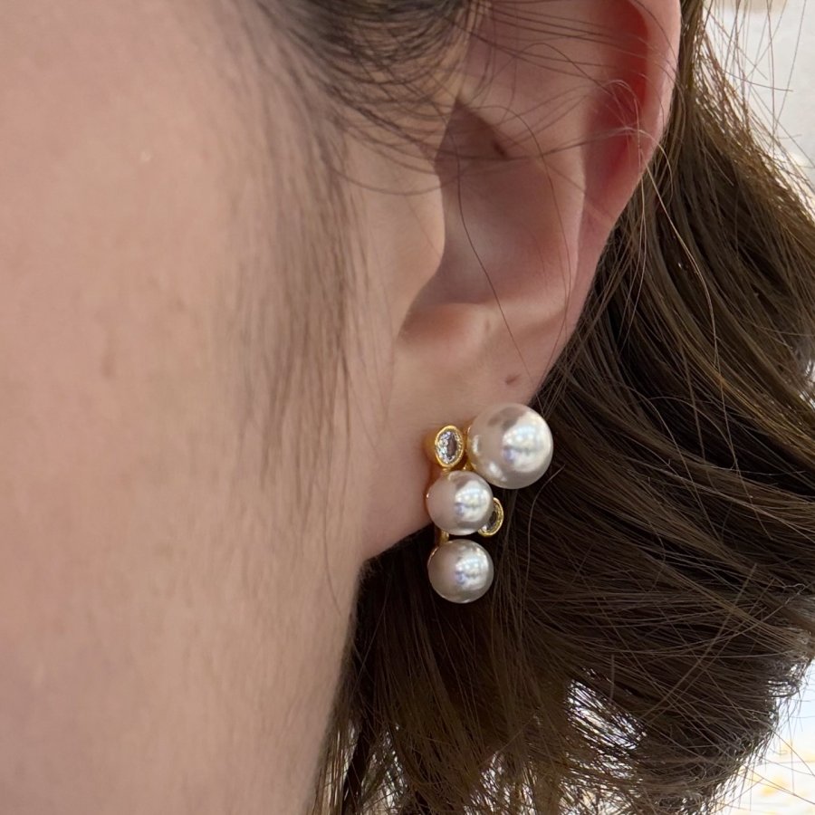 大人気、トリプルパールストーンリングをイメージしたピアス。
