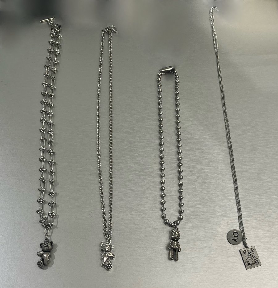 OYから、人気のくまネックレスを紹介します!店頭で発売しているのはこの4点です。