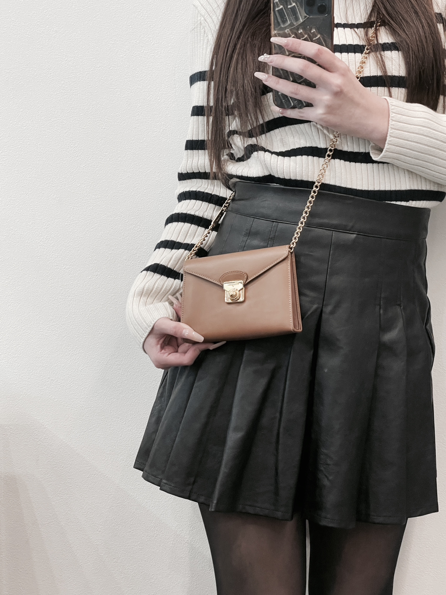 シンプルなデザインにゴールドのチェーンが映える、上品なミニバッグ!