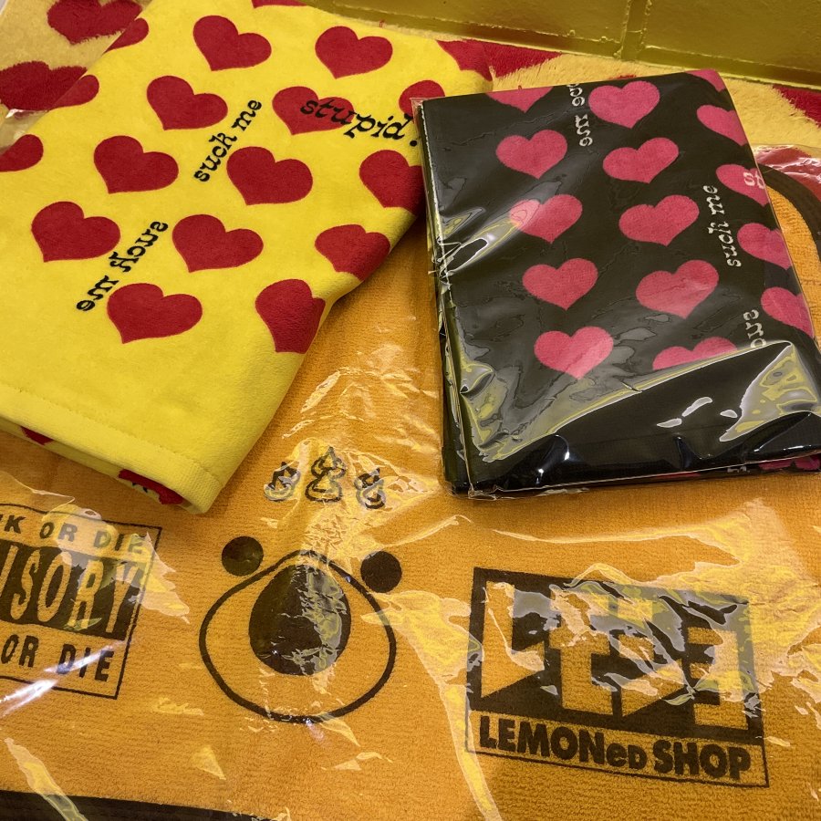 フェイスタオルはイエローハート、ブラックハートの2色展開でご用意しております!