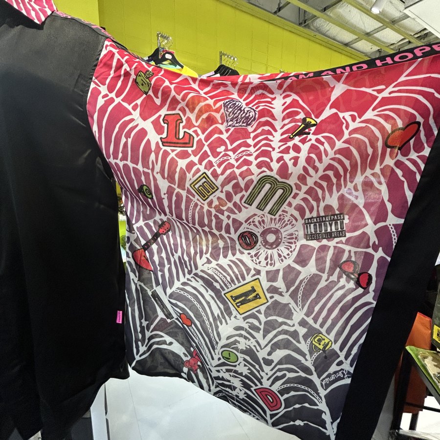 黒のシャツをベースに、袖にはギターやサイコベアなどなどLEMONeDらしい可愛いデザインに