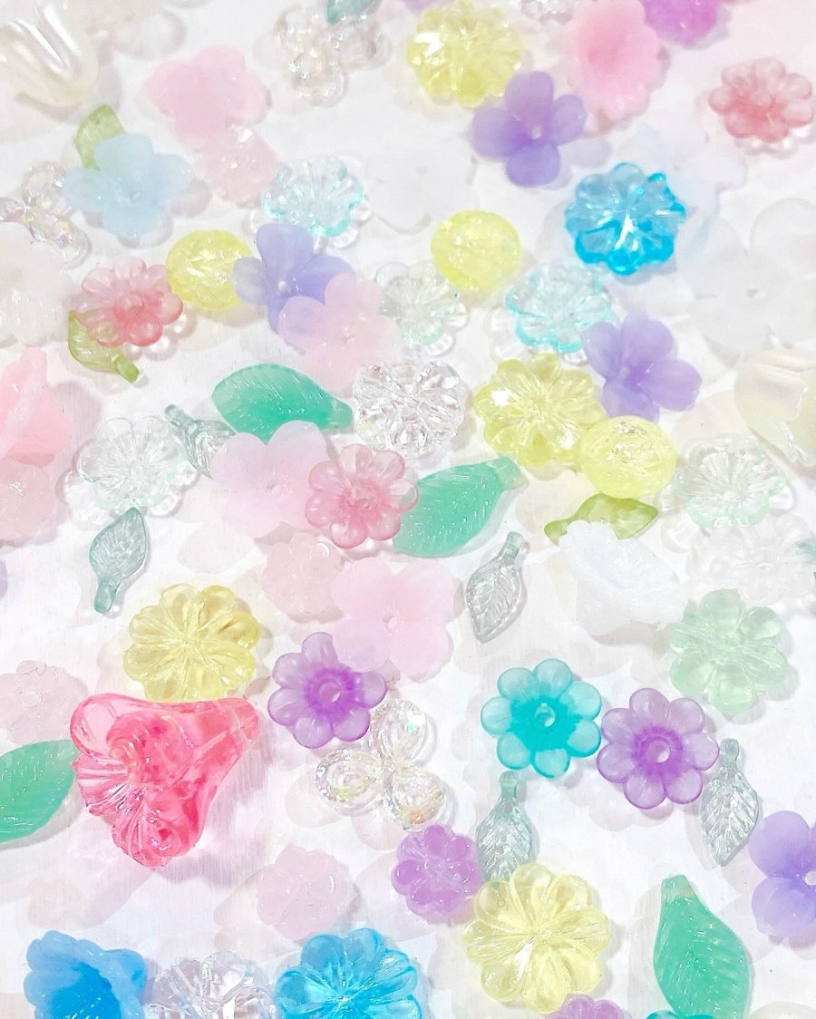 お花モチーフのアクリルビーズを集めました。