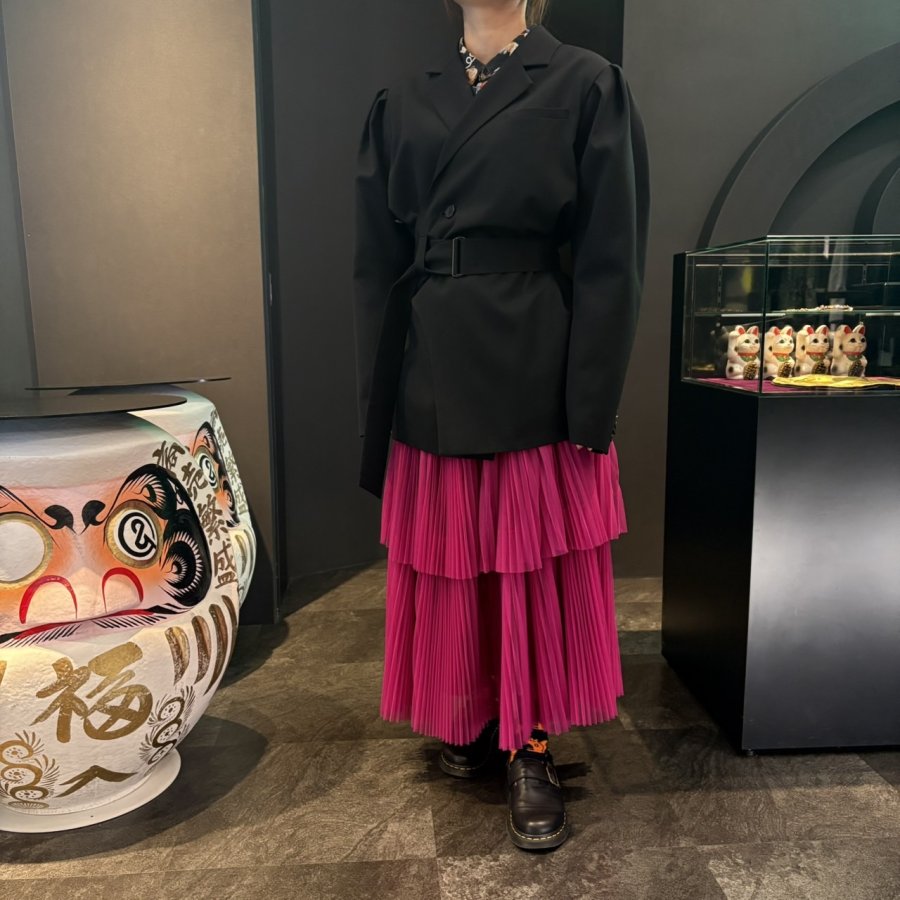 ウエスト部分のベルトと肩のタックでスタイルアップもできちゃいます!