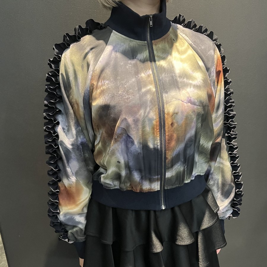 フリルテープがポイントのブルゾンはアウターとしてもインナーとしても楽しめる万能アイテムです!