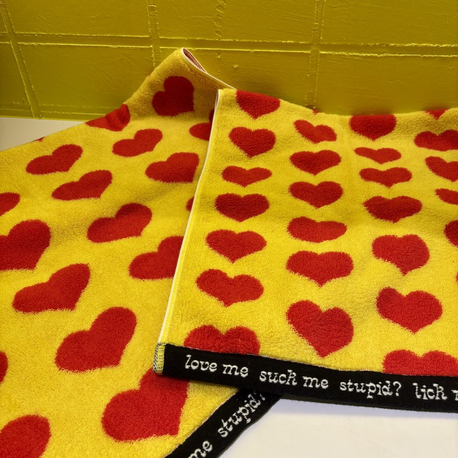 レモショにてYellow Heartデザインのタオルは様々なサイズで取り扱い中です!
