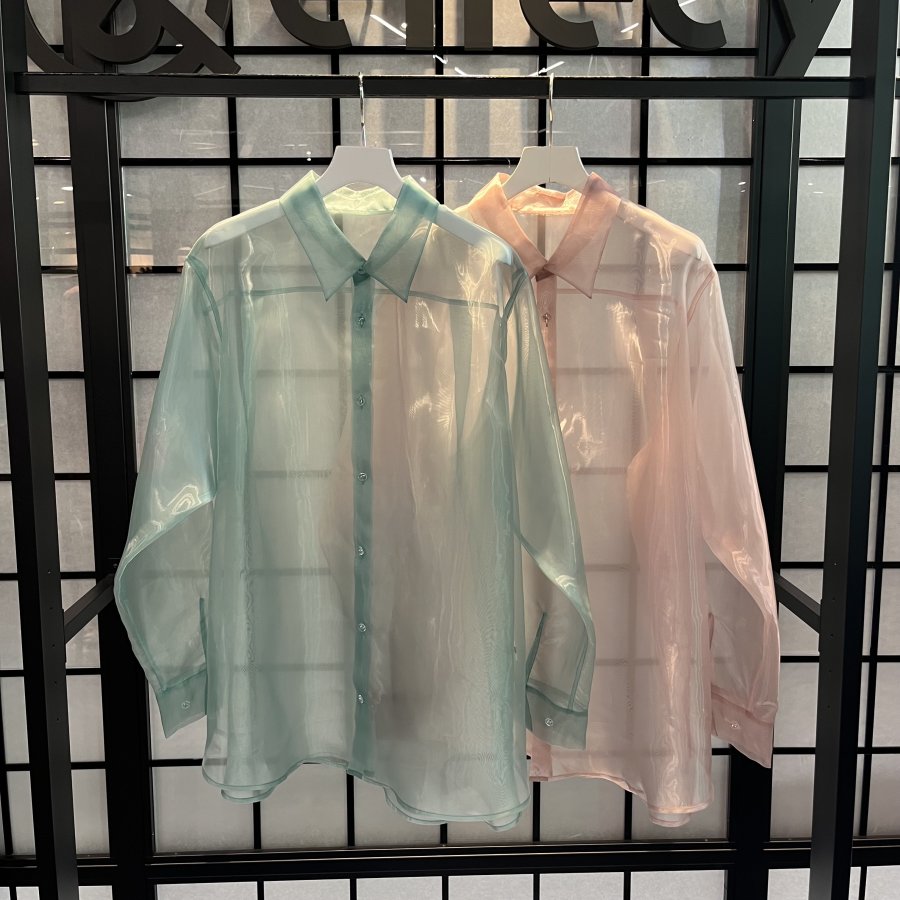 シアー感とクリアボタンが可愛いシャツ