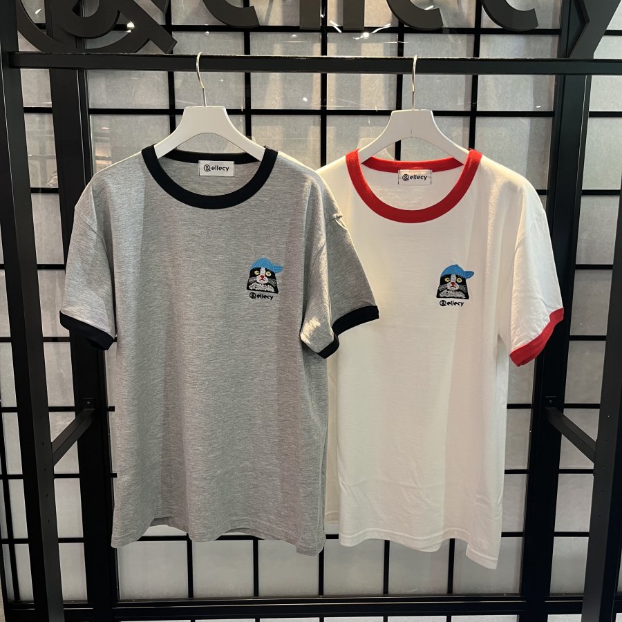 胸元の刺繍がポイントの【猫リンガーT】