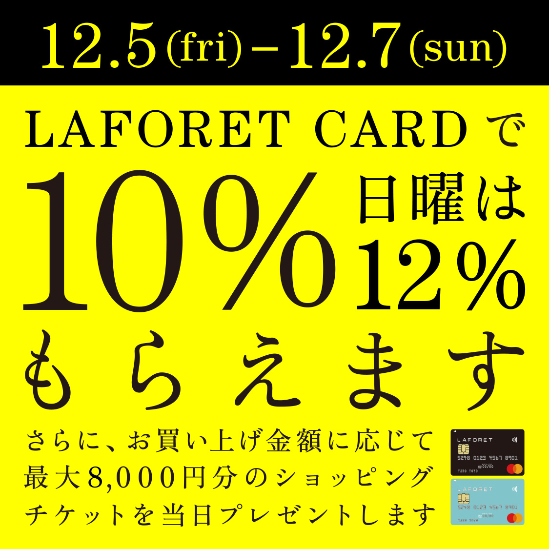 ラフォーレカード10%フェア&ショッピングチケットプレゼントキャンペーン