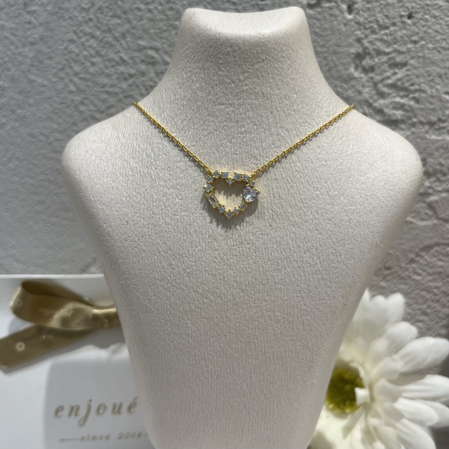 ハート型のストーンが付いたネックレスで可愛らしくコーデのワンポイントに!