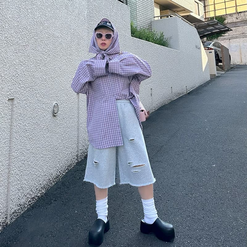 スカーフとセットのチェックBIGシャツ