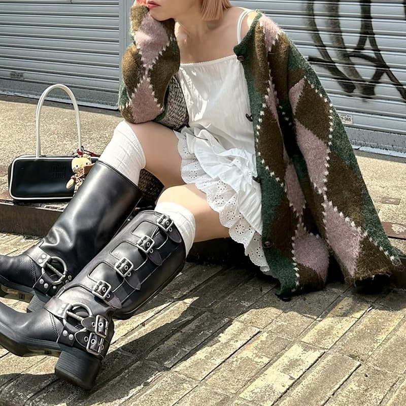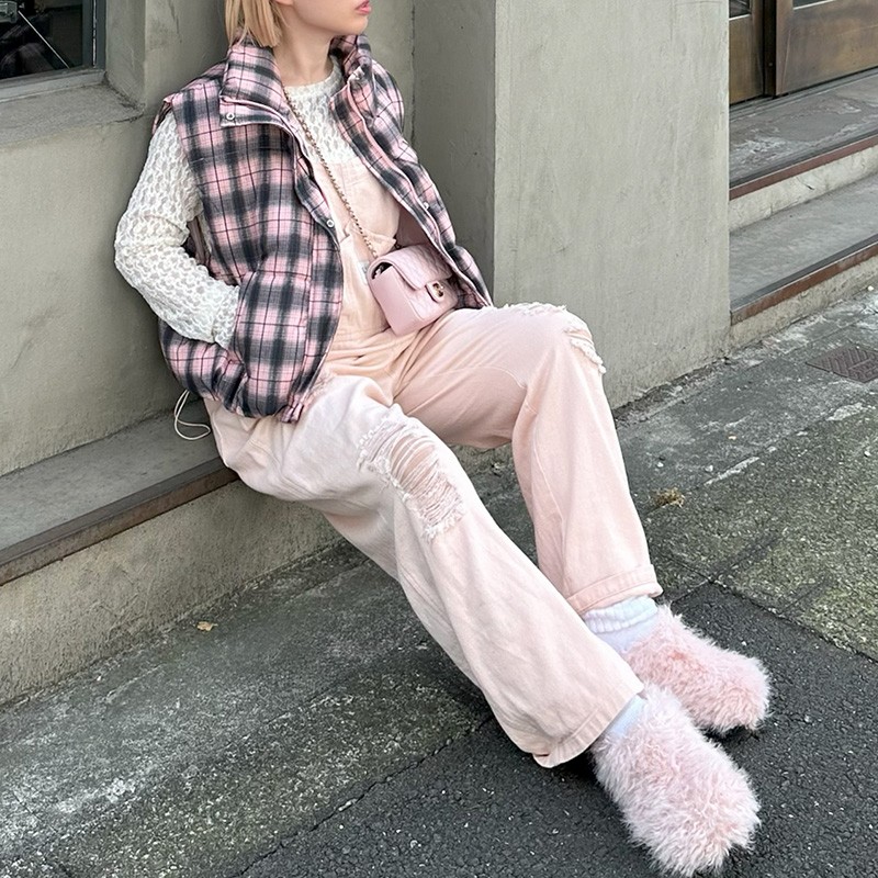 アーガイル柄のふさふさBIGカーデ