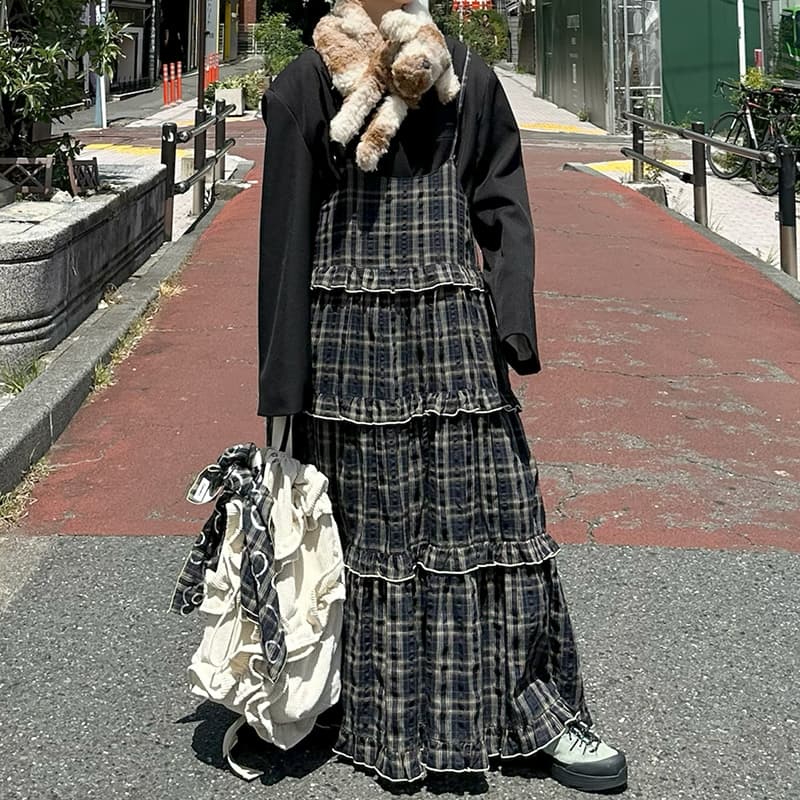 フリルティアードキャミワンピ