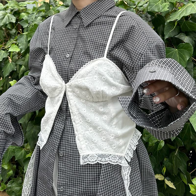 コルセット切替コットンレースキャミ