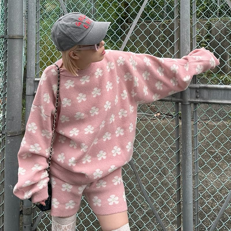 お花のニットトップス