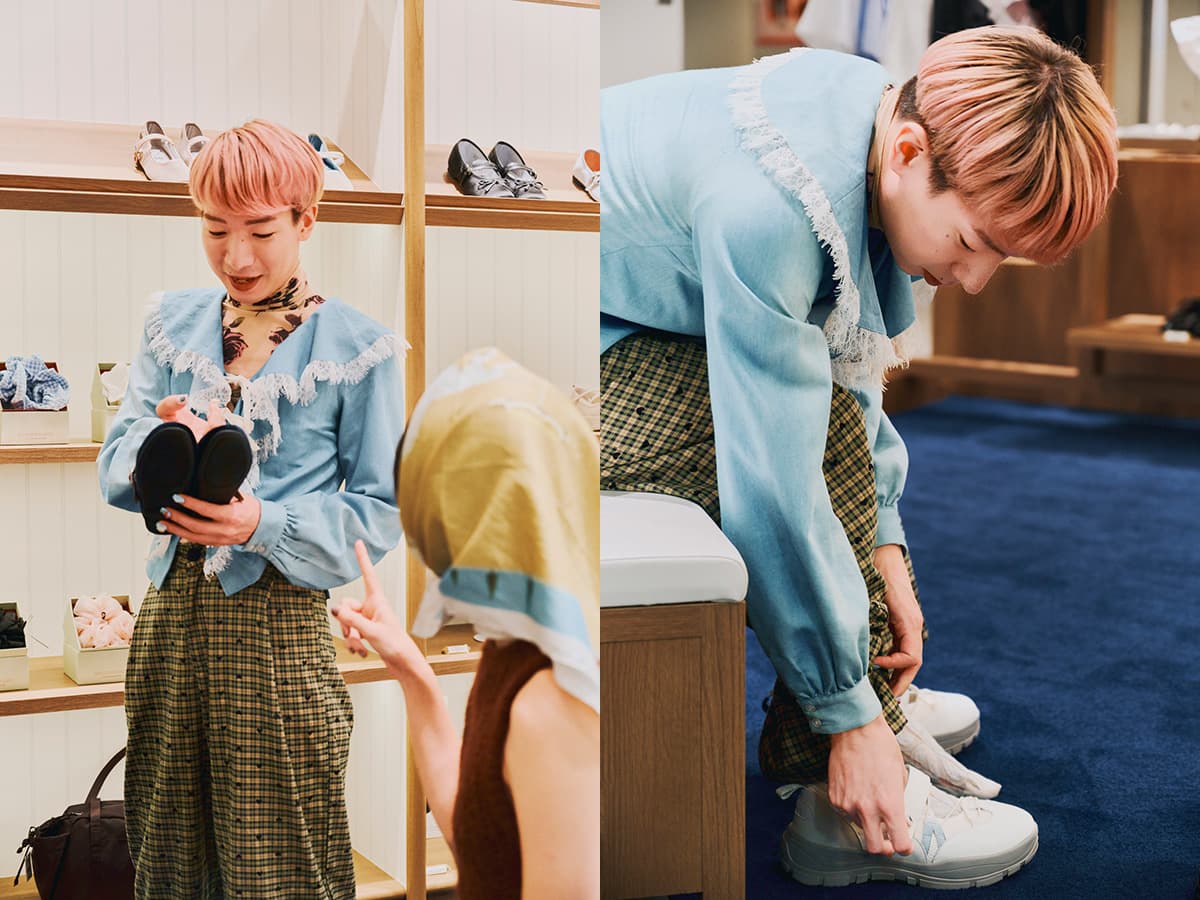 まず、ゆっきゅんがアリスに選んだのは、ブランド定番のメリージェーン。ベーシックなデザインでどんなファッションにも合わせやすい一品です。一方、自身に選んだのは、エアメッシュ素材のスニーカー。〈Rockfish Weatherwear〉には履き心地の良さを追求したミッドソールや、タフなラバーアウトソールを取り入れた、機能的なシューズもあります。