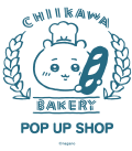 「ちいかわ」のベーカリーをコンセプトにしたポップアップショップ。パン屋さんの衣装に身を包んだキャラクター達のトレーやタンブラーなどの雑貨や、お土産にぴったりなクッキー缶やキャンディを販売。また食パンやラスク、フィナンシェなども展開しています。