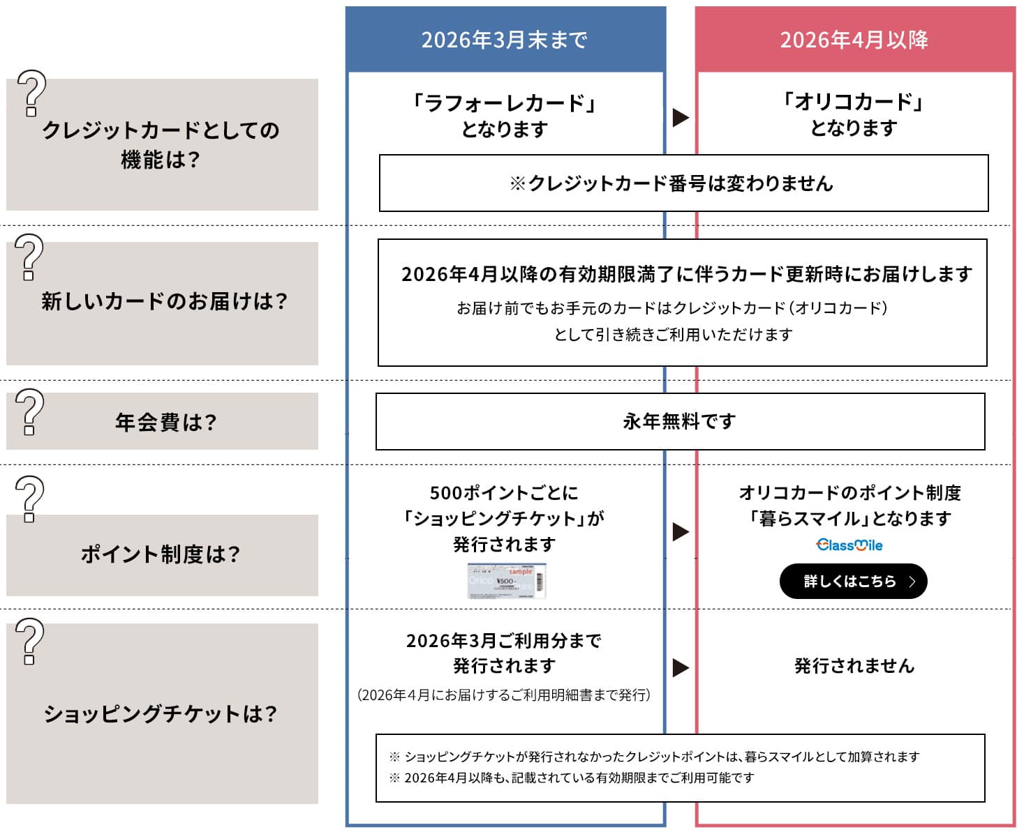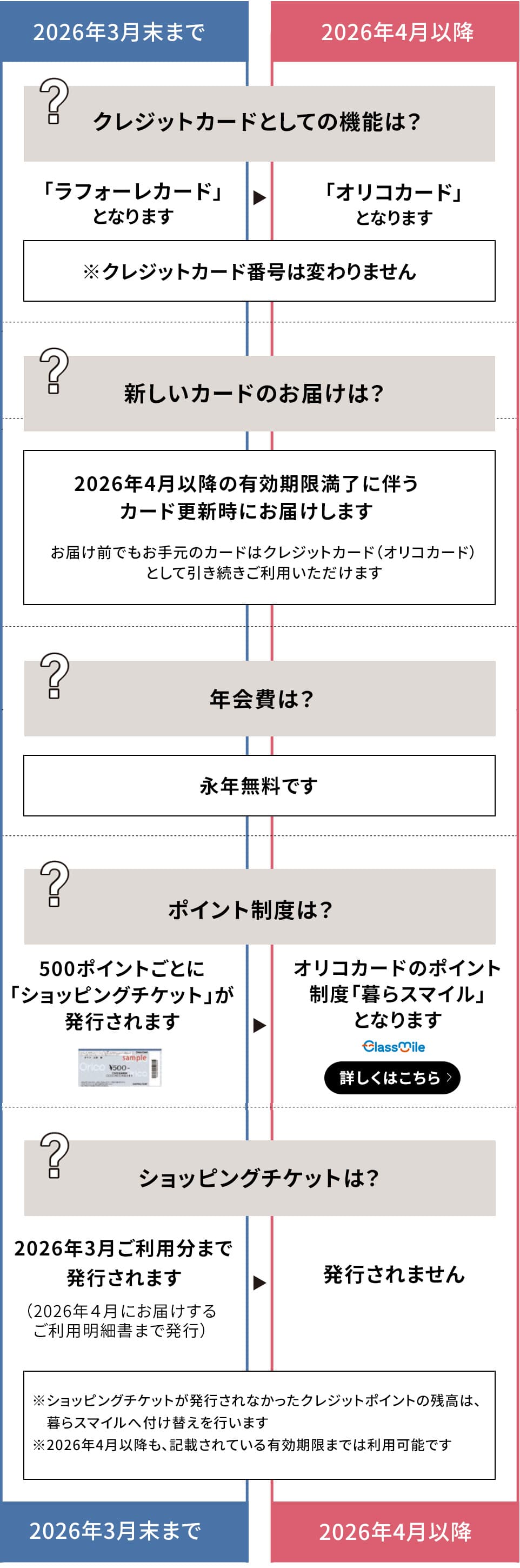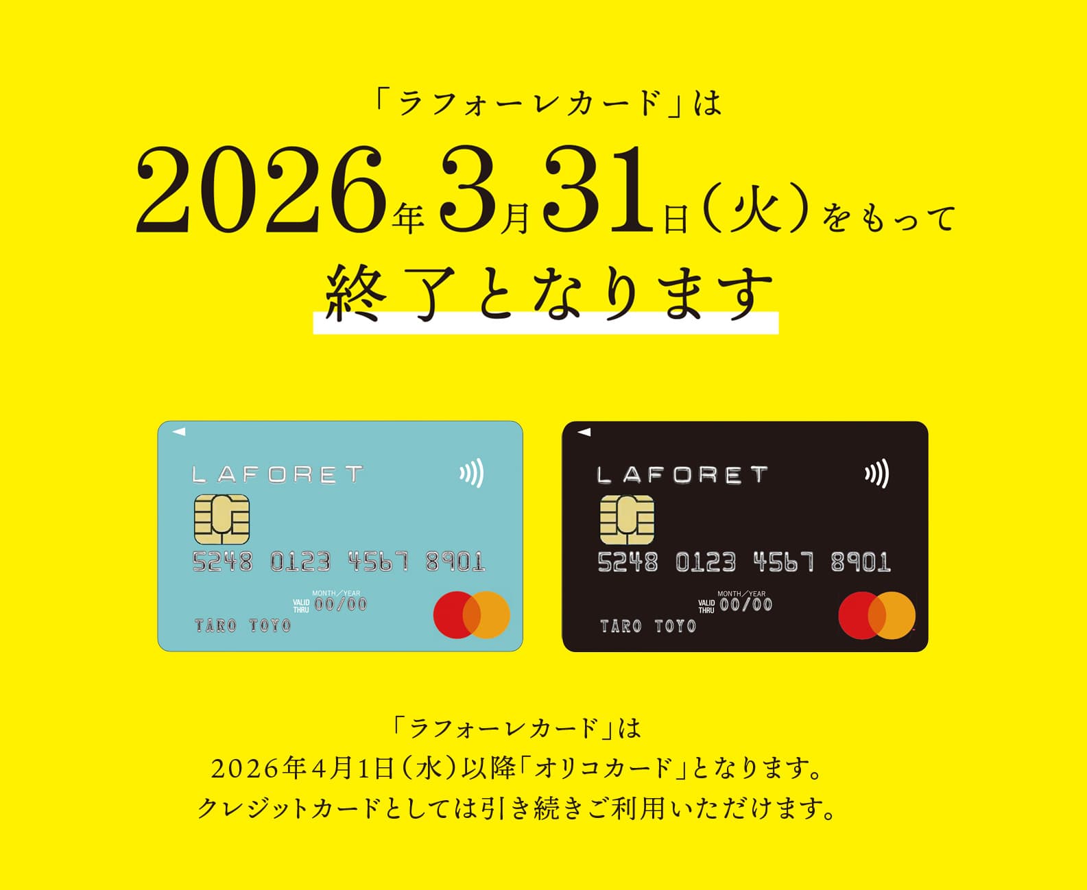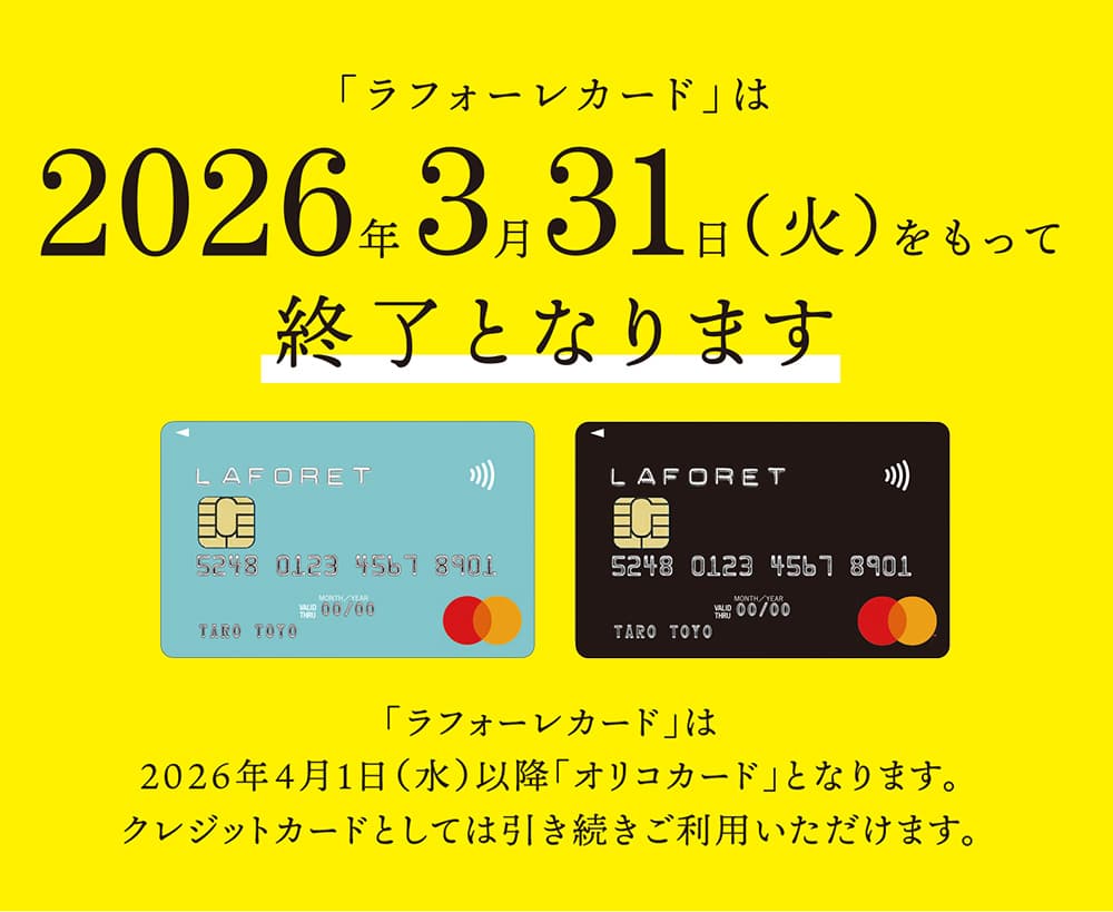 - ラフォーレカードのご利用に応じてお送りしているショッピングチケットは、2026年4月に発行するご利用代金明細書をもって終了となります。